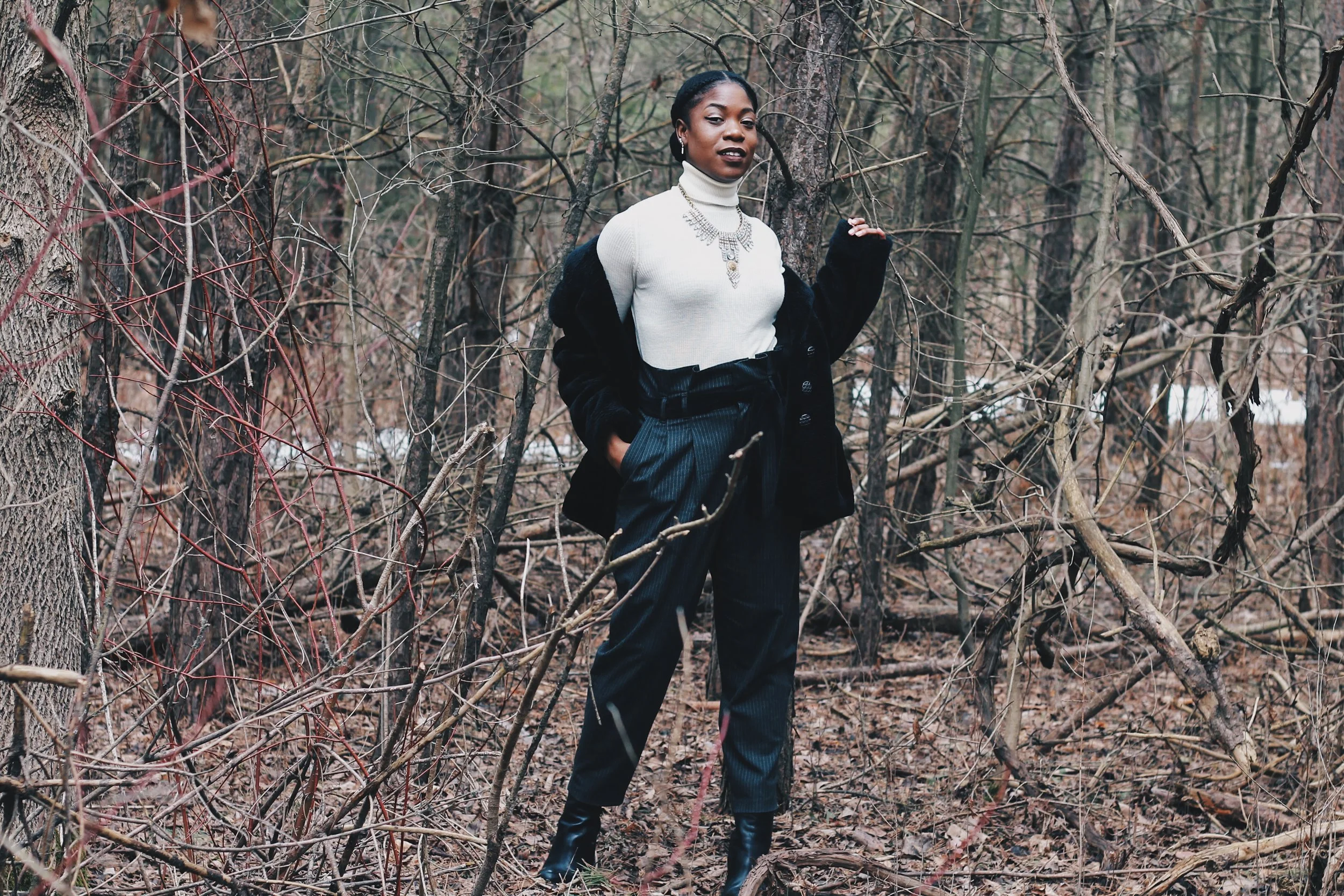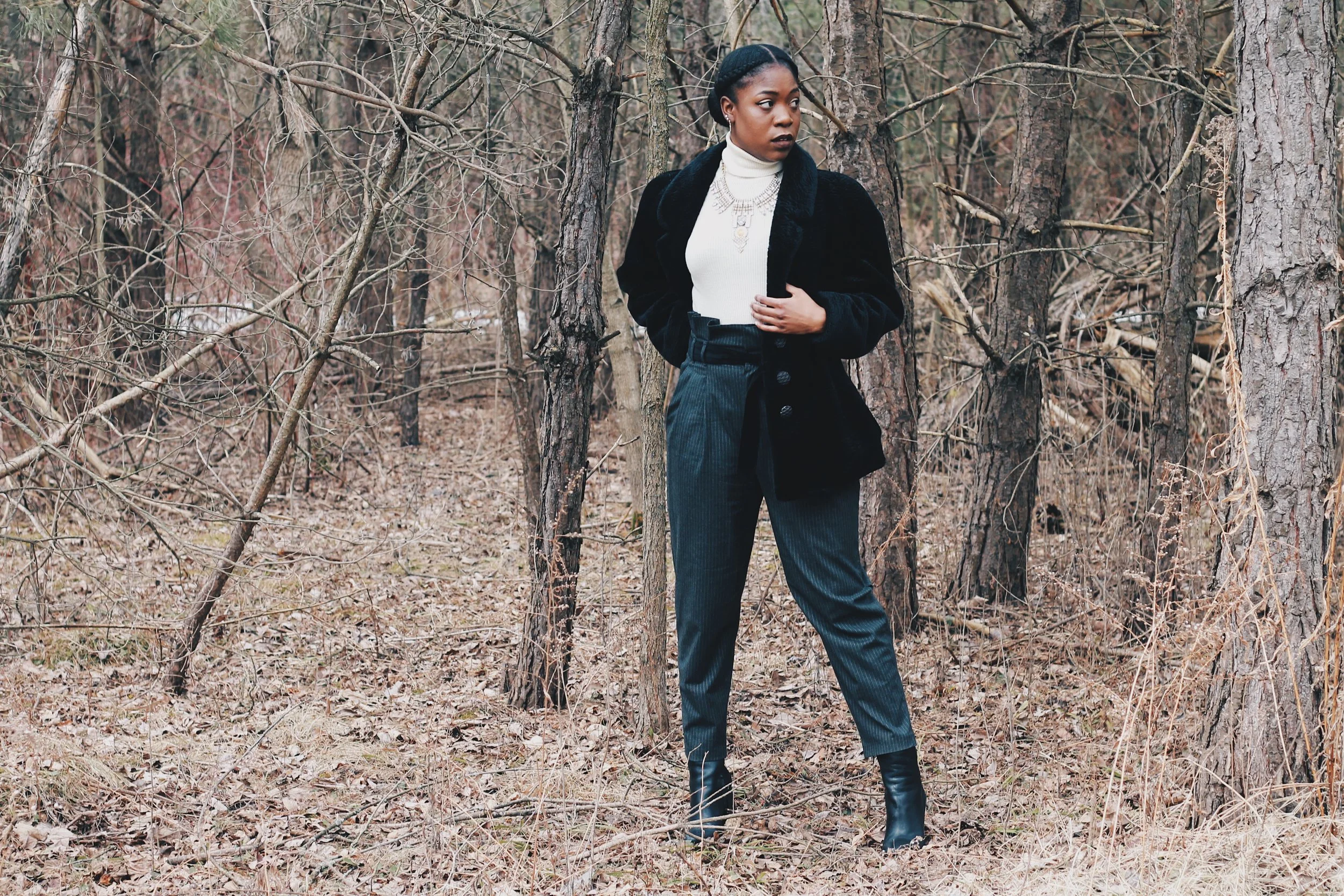 I chose to shoot this ensemble in the forest to demonstrate this sort of “breath of fresh air” I’m speaking about. We've already reached the third month of the year- how? I wish I knew. But time waits for no one, and I know that in order for me to put my best foot forward, I have to take care of myself far more in depth than treating my skin to a face mask once a week and a glass of wine here and there. While fashion for me can be a “breath of fresh air”, I’m trying to find ways to stimulate my mind and add more colour, more joy and more simplicity to my life. Thus- the woods. As a child I absolutely loved nature walks and I figured, why not revisit that as my breath of fresh air? I was greeted by so many birds and saw (and heard) my very first woodpecker. Had I stayed home or even shot in my normal spot (see, almost every blogpost I have up), I would’ve never seen such beauty. It was a treat for my mind and my body. PLUS- I put together a completely different visual for you all, which is such a satisfying feeling!