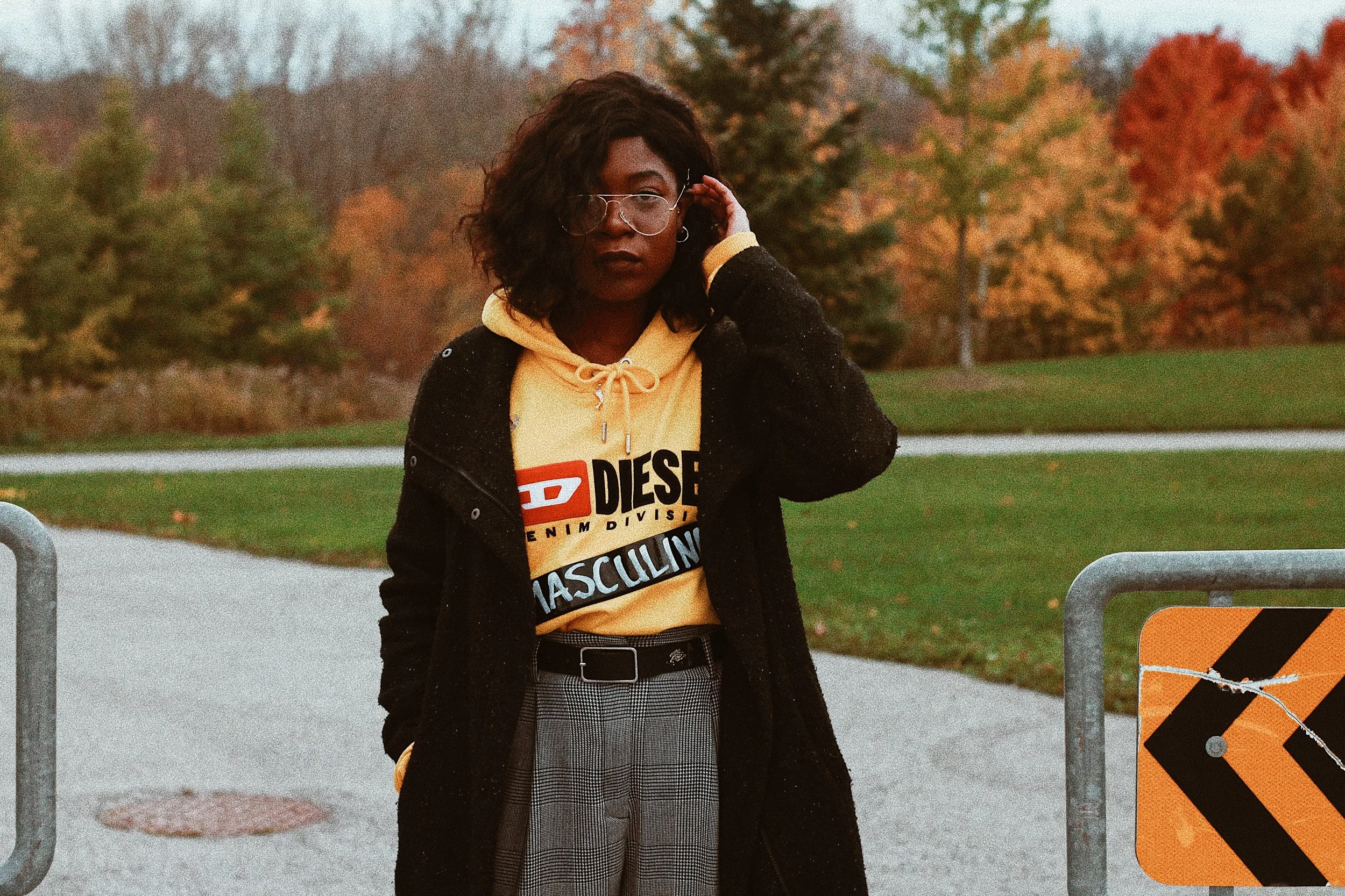 diesel 90’s hoodie // h&m houndstooth trousers // fila disruptor ii’s // vero moda coat // saint glasses CLEAR FRAME